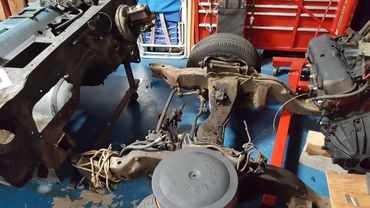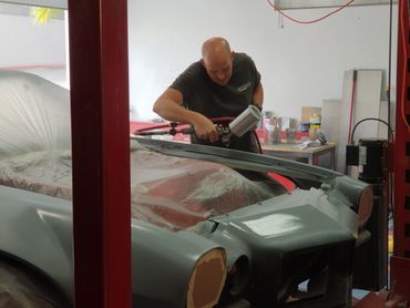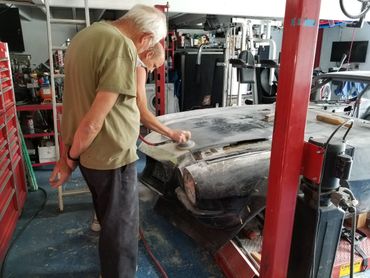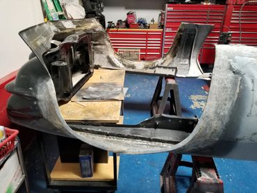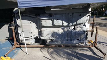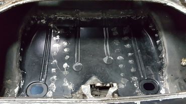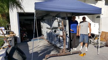 John & Paul working on the body now it's off the rotisserie. The entire body was stitch welded for strength and and reinforced. We have a strong and solid foundation to build on now.