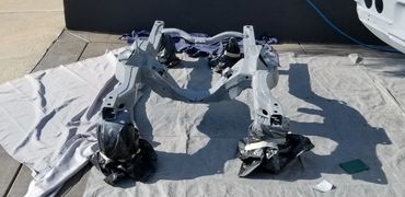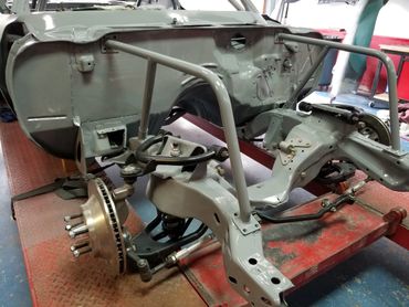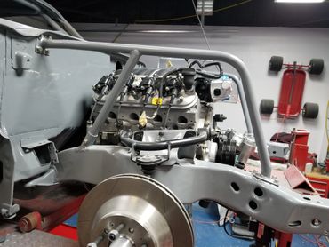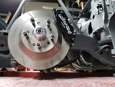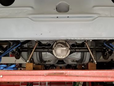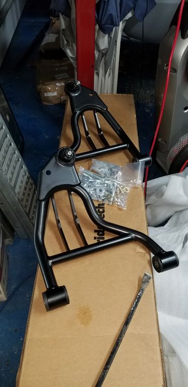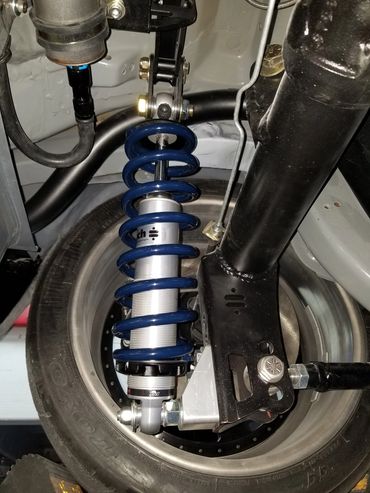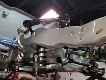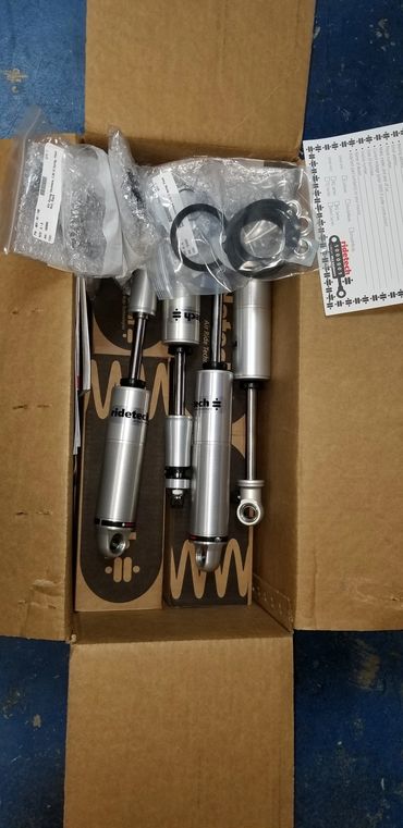 Ride Tech suspension ready to install. It includes coil overs on all corners, a 4 link rear end, revised geometry a-arms, new spindles and steering linkages which allow the body to be lowered and maintain steering with no bump steer. Ride Tech have been amazingly helpful and their product is outstanding. It's used by many of the top race teams.