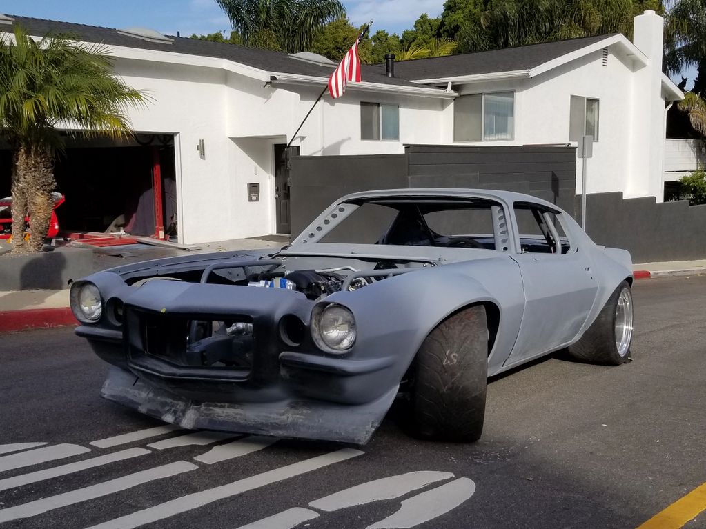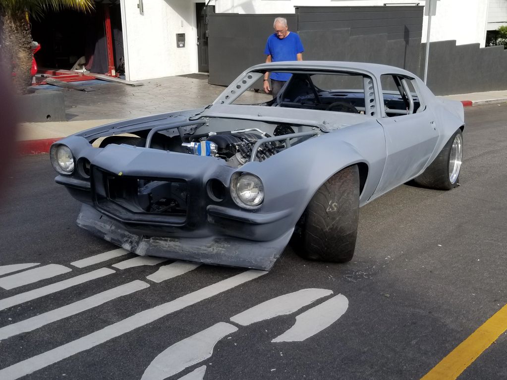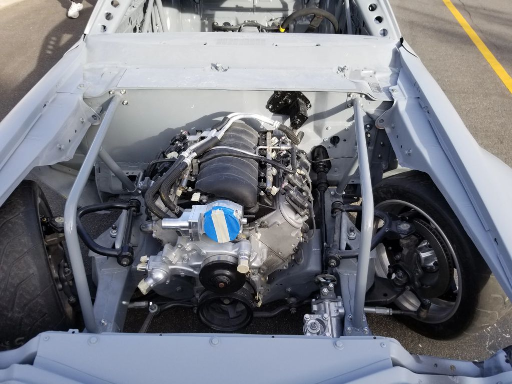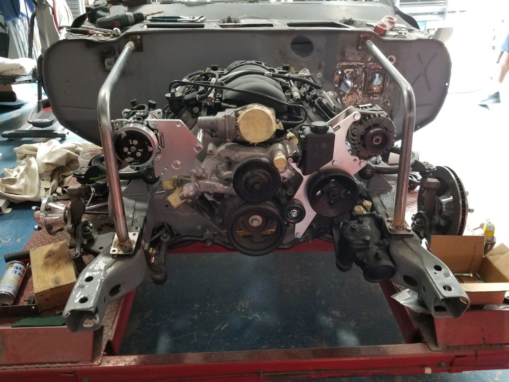 On 4 tires and rolling for the first time. The LS3 sits low and back in the front sub-frame.