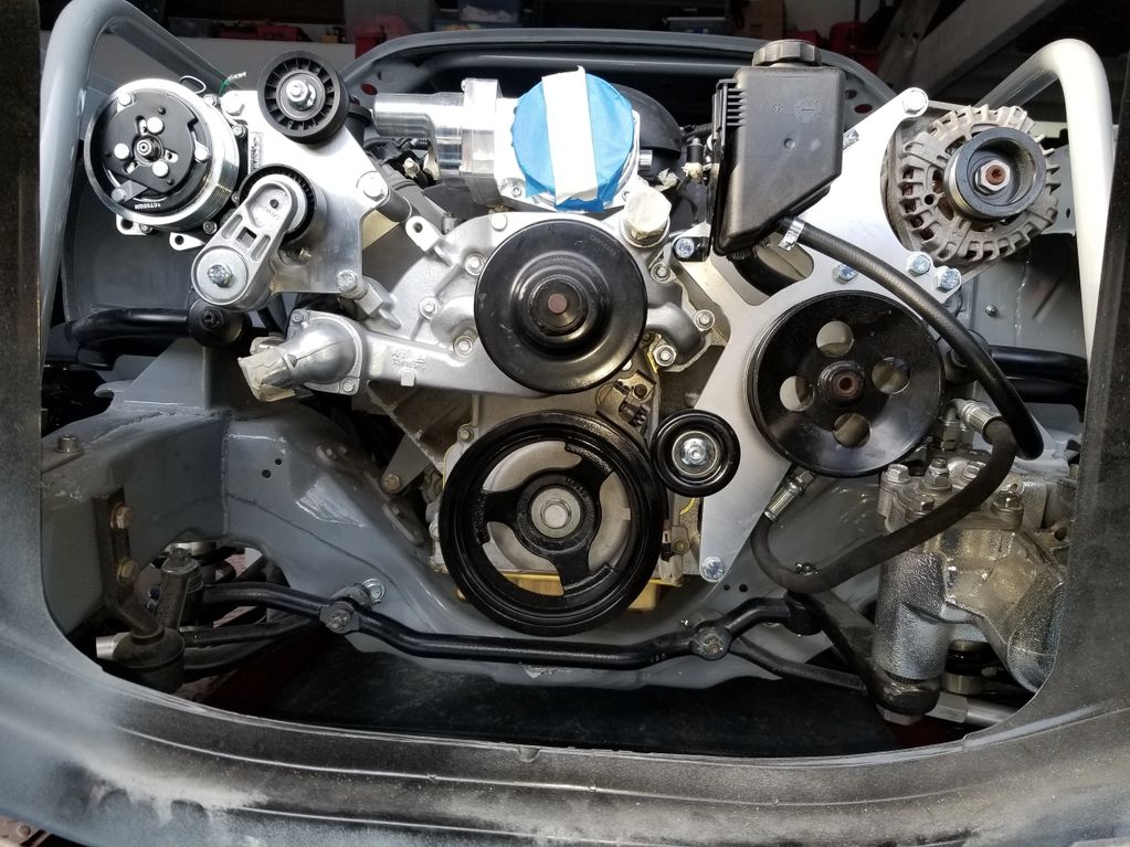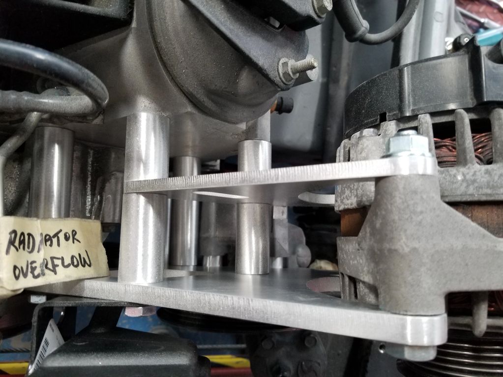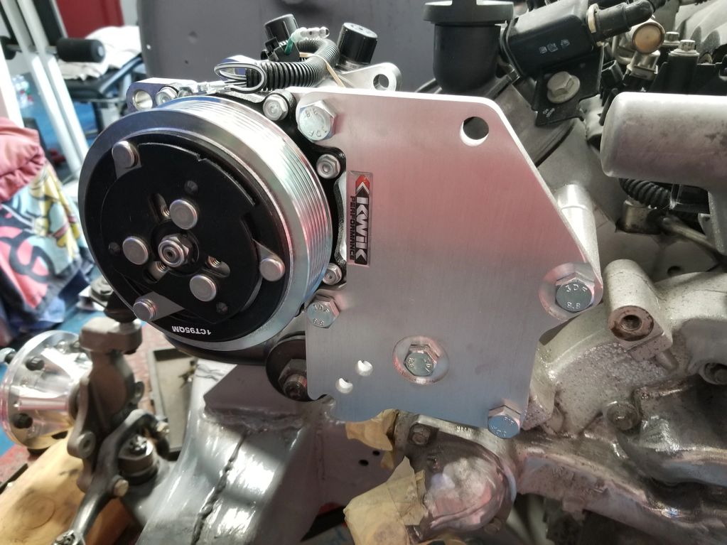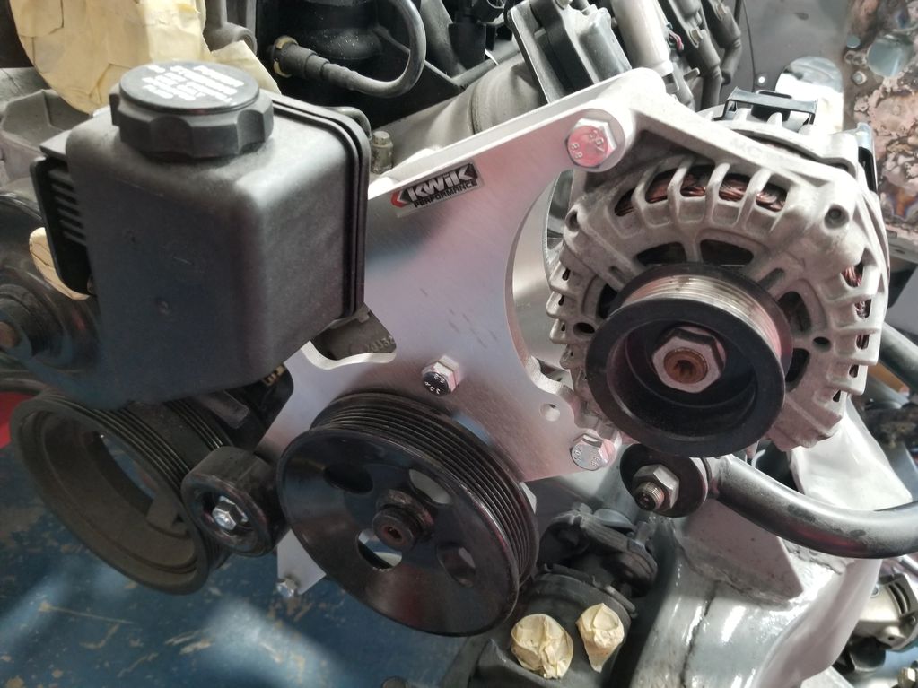 KWiK Performance brackets hold the alternator, A/C (yes one luxury/comfort item-LOL,) and power steering. I also bought the A/C unit from KWiK to match the Vintage A/C system to come. Wayne is incredibly helpful and provided a lot of advice during and after the sale to get it all set up correctly. I highly recommend Wayne & KWiK Performance.