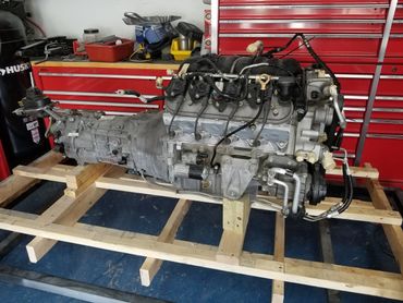 The LS3 SS Camaro engine and transmission arrived on a pallet and ready to run. I added oil and gas and started it up.